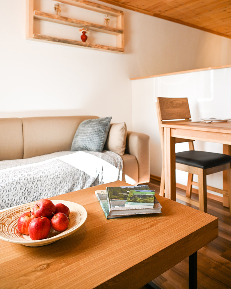 Auf ca. 30 m² bietet das Maleo am Lech modernen Komfort und stilvolles Design. Ideal für Paare, die Ruhe und Natur genießen möchten.